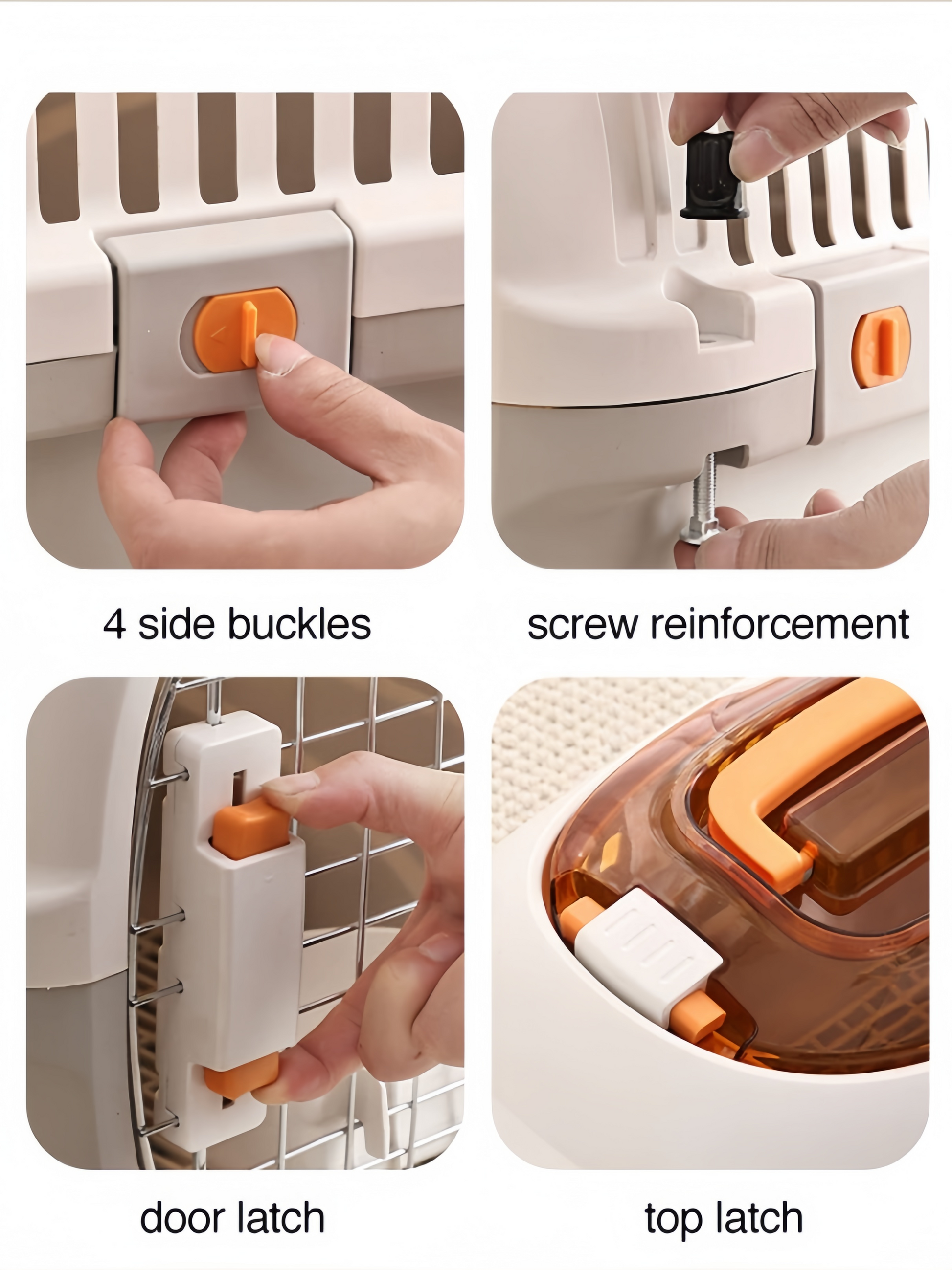 - Portable and Practical:Equipped with an orange handle, it is convenient for owners to carry it easily. The box is compact in design and does not take up too much space. It is very convenient and practical for both air consignment and daily carrying of pets.