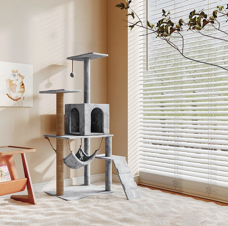 - Multifunctional Play Space: Integrating multi-layer platforms, cat nests, hammocks, cat climbing posts and other facilities, it meets cats' various needs such as climbing, jumping, resting and scratching, creating an exclusive interesting small world for cats.