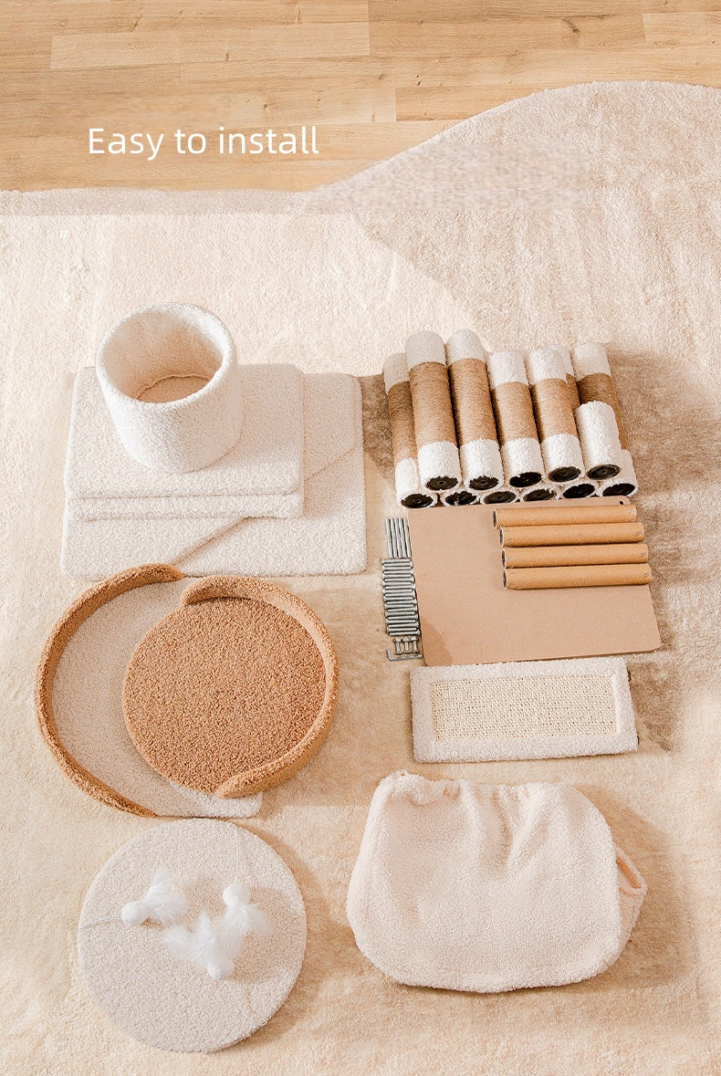 - Scratching Posts and Ramp: Equipped with durable scratching posts wrapped in sisal, which is ideal for cats to scratch and sharpen their claws, protecting your furniture. Additionally, a ramp is included, making it easy for cats, especially older or less agile ones, to access different levels.